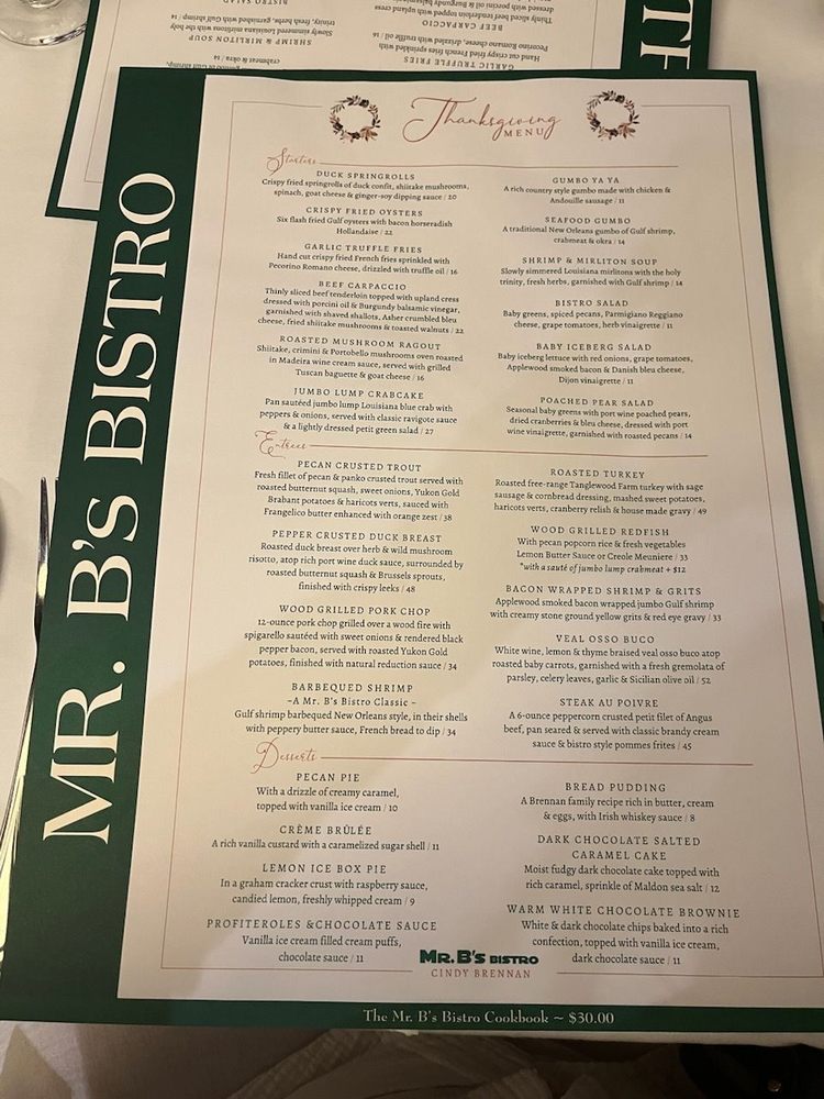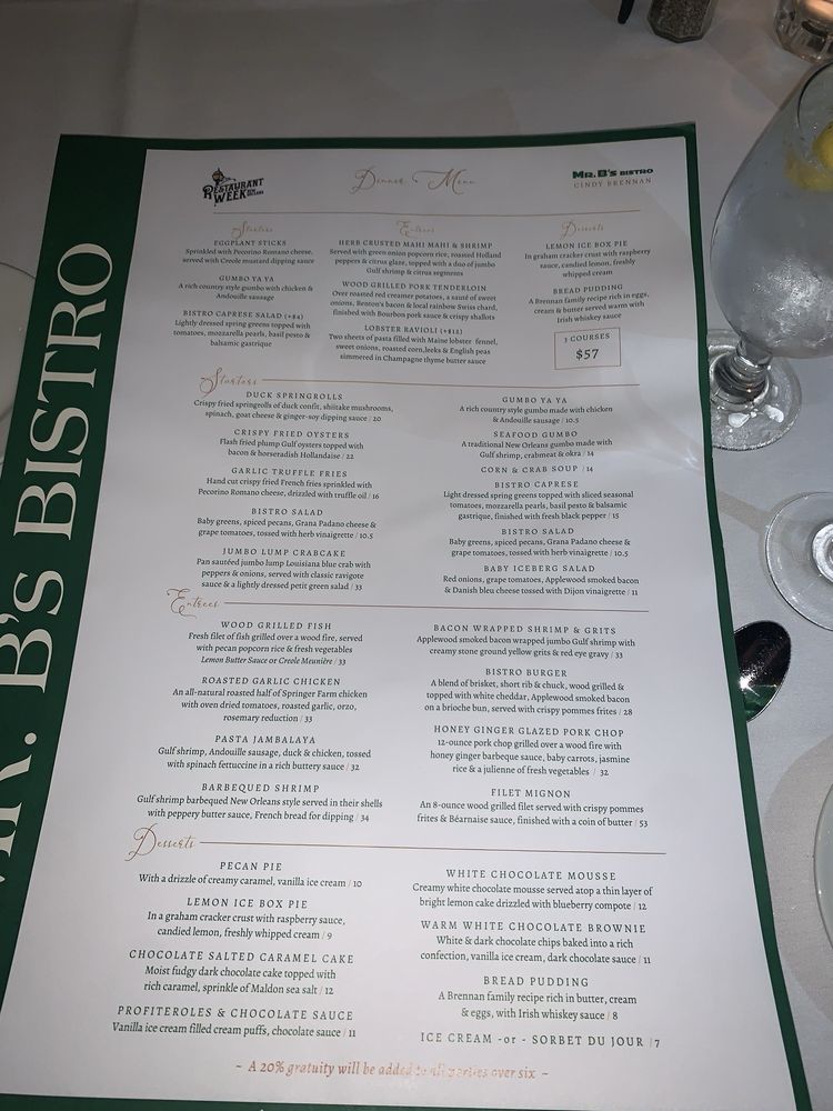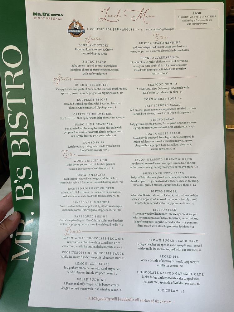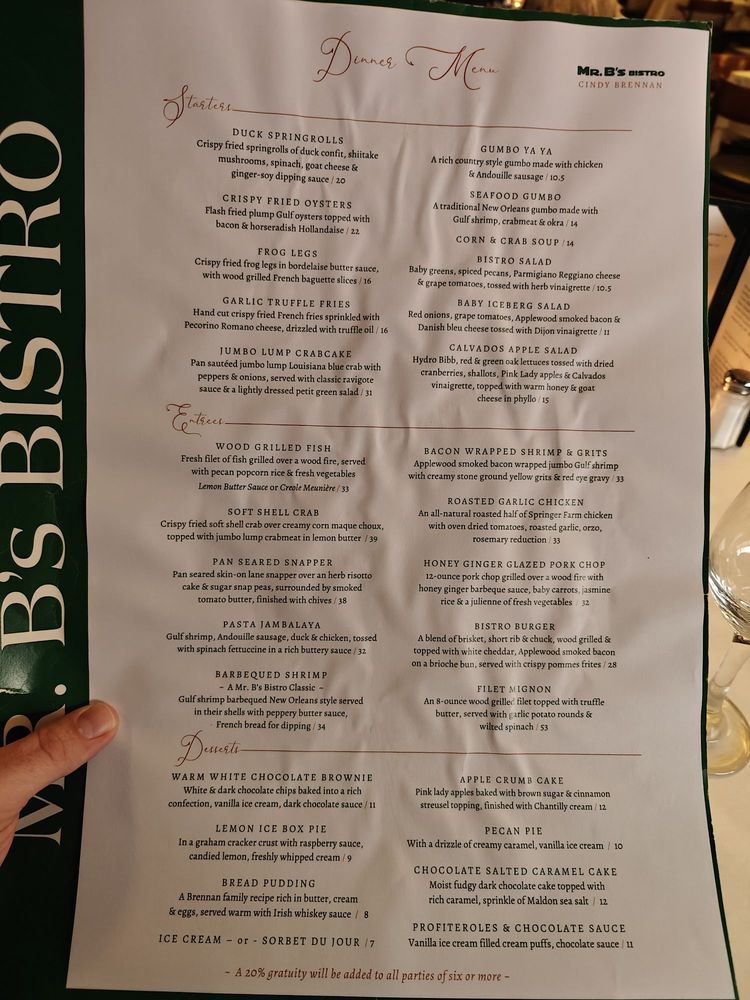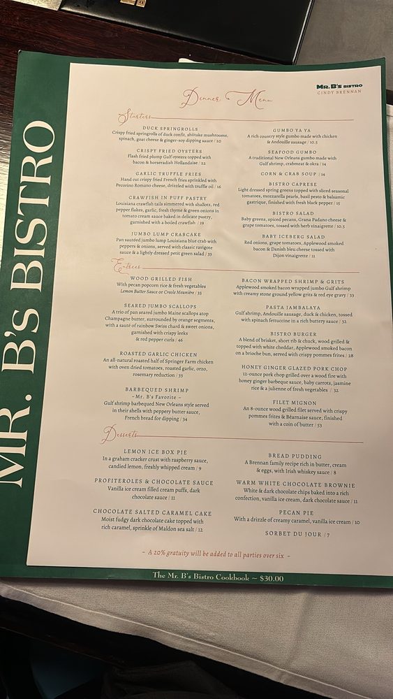 Mr. B's Bistro Menu (2025 Update)