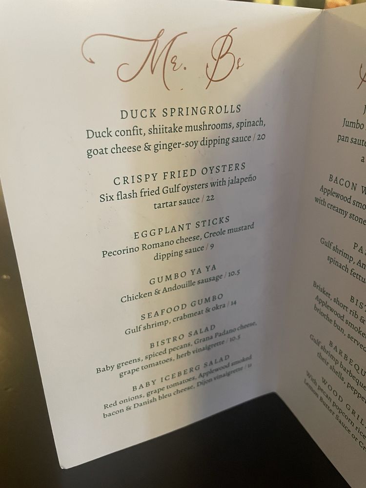 Introducing Mr. B's Bistro, a charming establishment in New Orleans offering a mix of Cajun/Creole cuisine, cocktails, and breakfast/brunch options. This upscale yet casual restaurant prides itself on its vegetarian-friendly menu, wheelchair accessibility, and options for both indoor and outdoor seating. With amenities like valet and garage parking, free Wi-Fi, and TV screens, Mr. B's Bistro is perfect for groups, families, or even a romantic dinner. The extensive menu features happy hour specials, a full bar, and a range of dishes to please any palate. From traditional Cajun classics to innovative creations, each dish is prepared with care and attention to detail. Whether you're visiting for a quick bite or a special occasion, Mr. B's Bistro is sure to leave a lasting impression.
